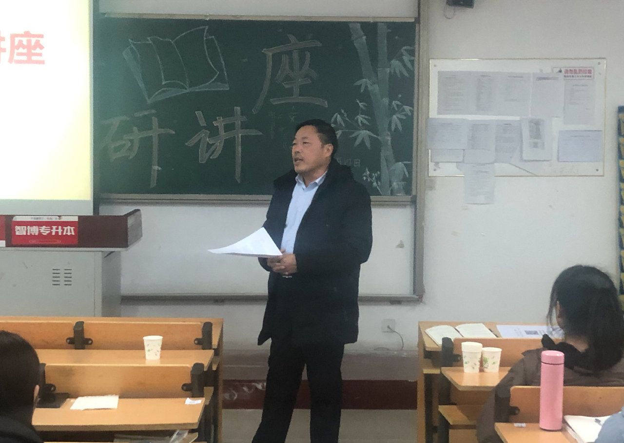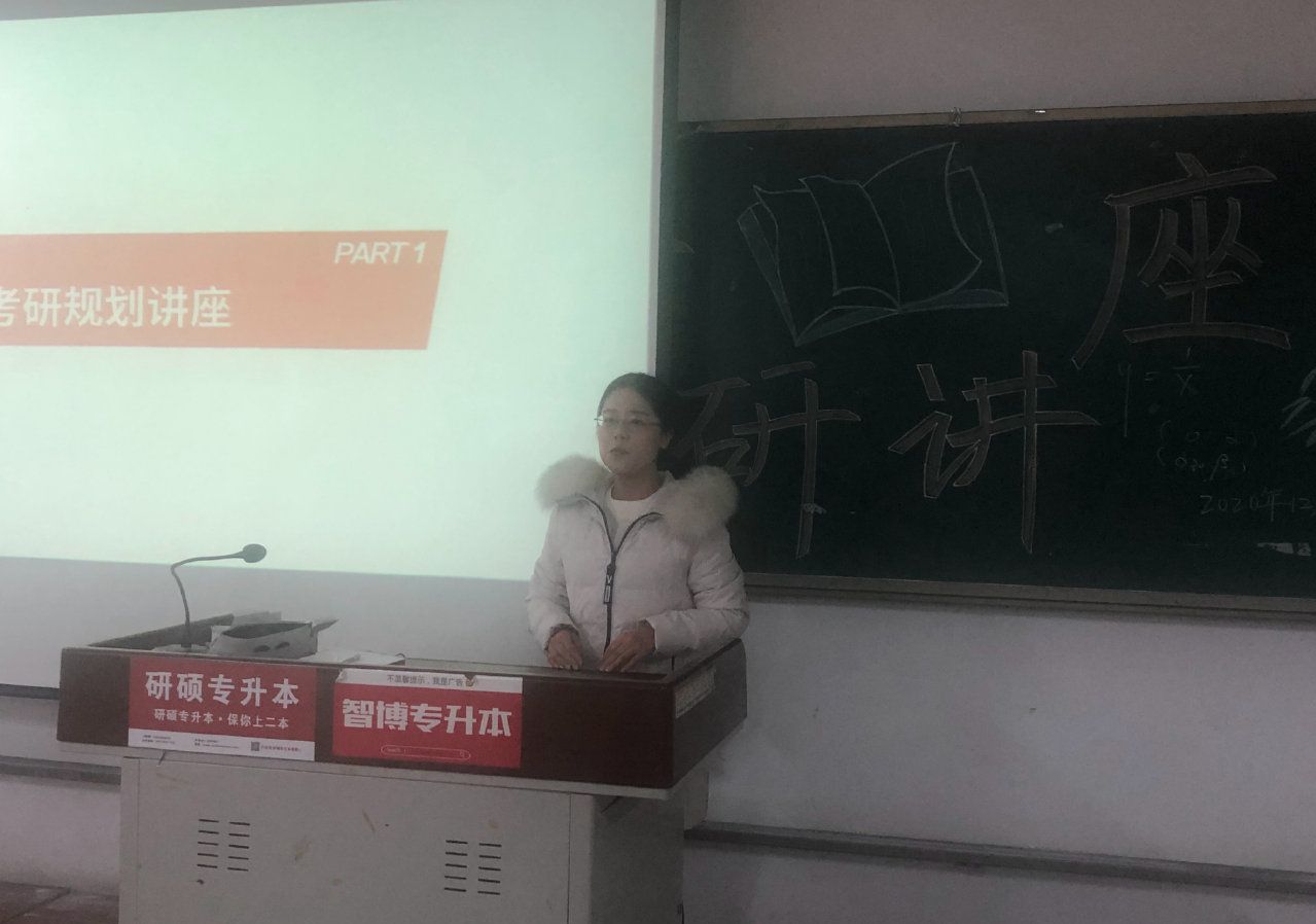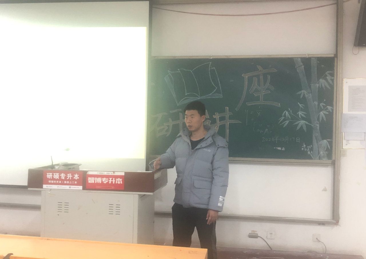 会议初,孟凡湘老师首先上台宣布会议开始并进行致辞,向在座的学生阐述了考研的重要性和必要性,并从部分真实事例之中向大家说明了考研的优势。张院长结合专业知识,对同学们的考研进行了专业指导。