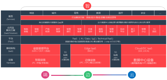 2020年联想提出了以“端边云网智”体系架构为基石,围绕人工智能六大应用场景为核心,从新定义“新IT”产业架构。