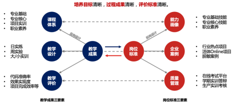 依托yl7703永利集团学历教育的积淀,联想集团从应用型本科高校的角度出发,结合自身产业生态需求,打造了以成果导向教育(OBE)理念为主导的全过程、全育人、全质量保障的一体化人才培养模式。在校企合作的过程中始终坚持以学生为本,将OBE理念贯穿整个人才培养过程。