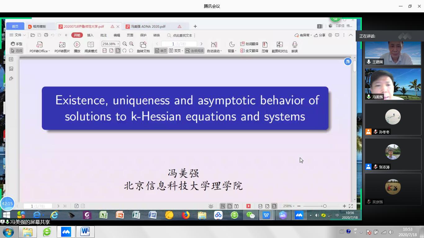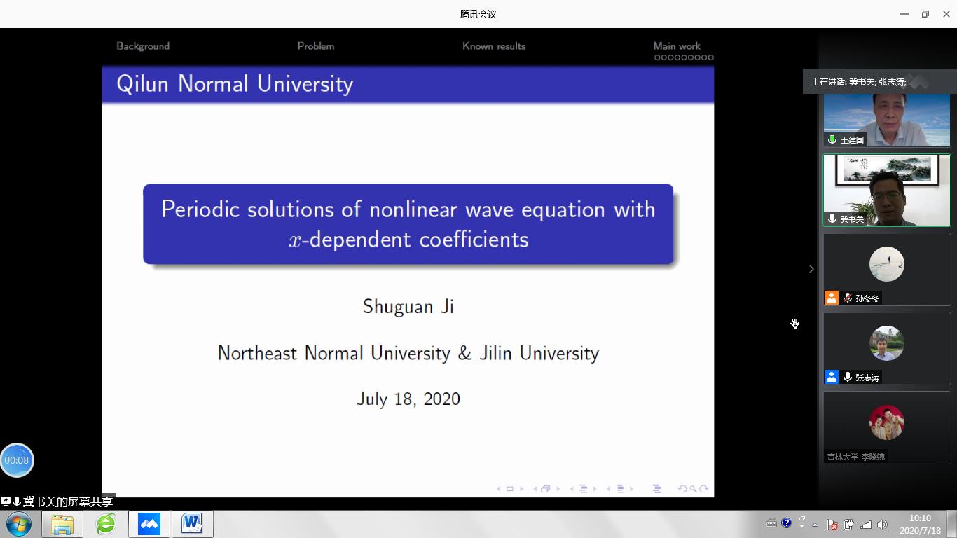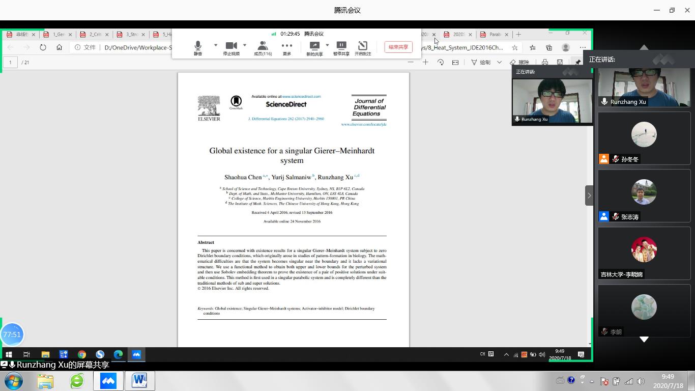 为促进非线性分析及应用相关领域学者特别是青年学者之间的学术交流,促进我校在非线性分析领域的发展,我校于2020年7月18日举办“非线性分析及应用青年论坛”。鉴于目前疫情形势,论坛采用了腾讯会议方式进行。来自全国各高校和科研院所的120余位专家学者和同学参加了这次会议。会议邀请了非线性分析及应用领域的知名专家做大会报告。