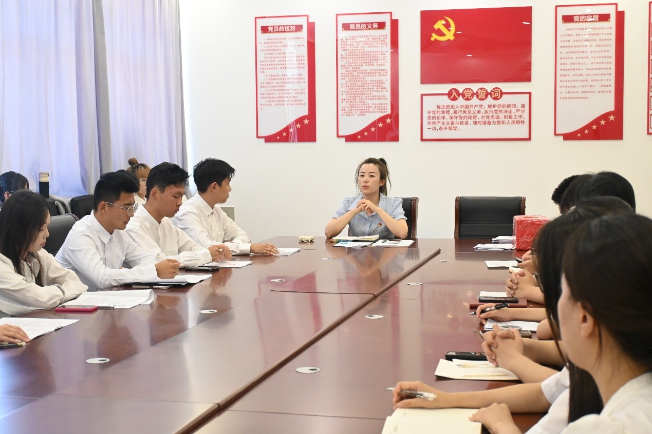 为深入学习领会习近平新时代中国特色社会主义思想和党的二十大精神,贯彻落实党中央关于主题教育的部署要求,推动主题教育走深走实,聚焦毕业生如何坚定理想信念,建功新时代。6月14日,学生党支部书记李钰茜在学院会议室给毕业生讲授了最后一次党课,2023届毕业生现场聆听。