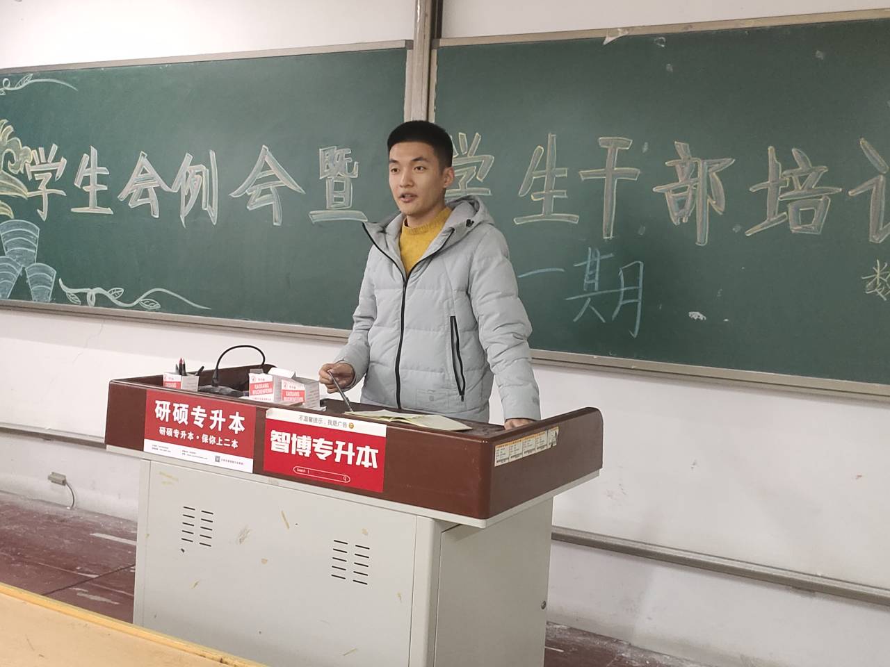 最后,学生会主席刘锦鹏讲述了学生会改革制度,并宣布将会在下一学期开始施行,旨在提高学生会成员质量,并督促学生会的每一位成员将自己的工作做到极致,能够全身心投入到学生会工作中。
