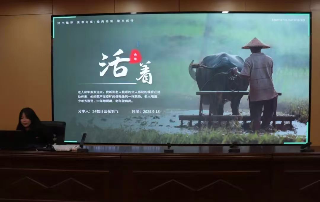 其中,张羽飞同学对《活着》的解读尤为引人深思,给现场观众留下深刻印象。分享过程中,他未止步于对故事情节的简单复述,而是紧扣主人公富贵“饱经命运磨难却始终坚守生之信念”的核心脉络,深度提炼并阐释“活着本身即具非凡意义”的主旨内涵,让在场学子重新审视“好好活着” 背后承载的生命重量与精神韧性。同时,张羽飞结合自身阅读时的真切体悟,以质朴而真挚的表达传递内心思考,精准戳中同龄人的情感共鸣点,让现场书香氛围愈发浓厚,思想共鸣的涟漪持续扩散。
