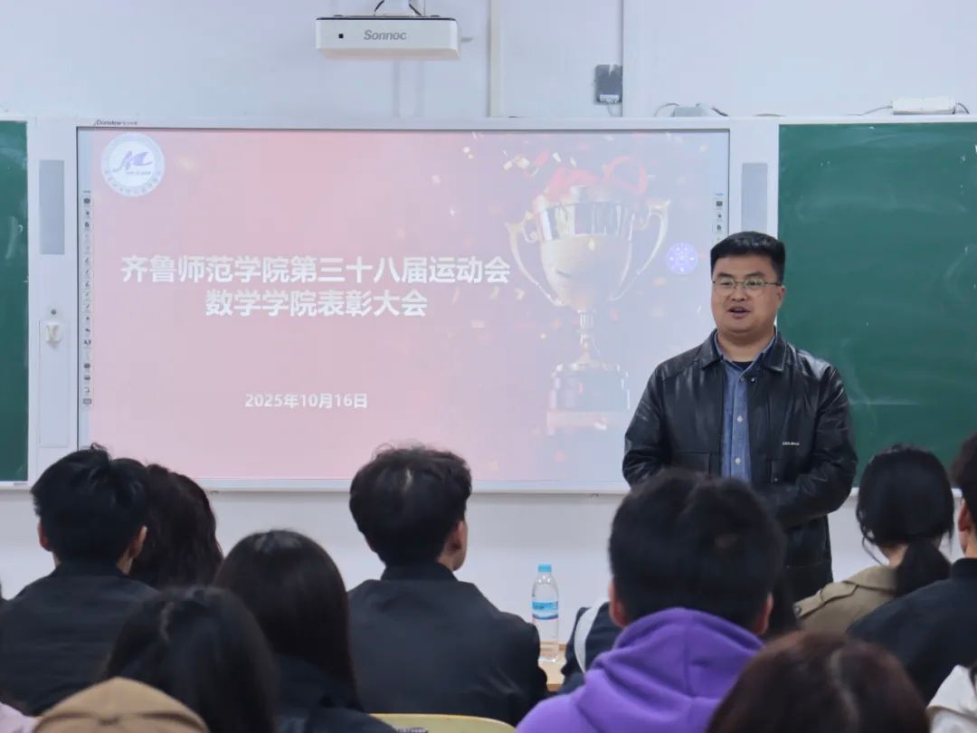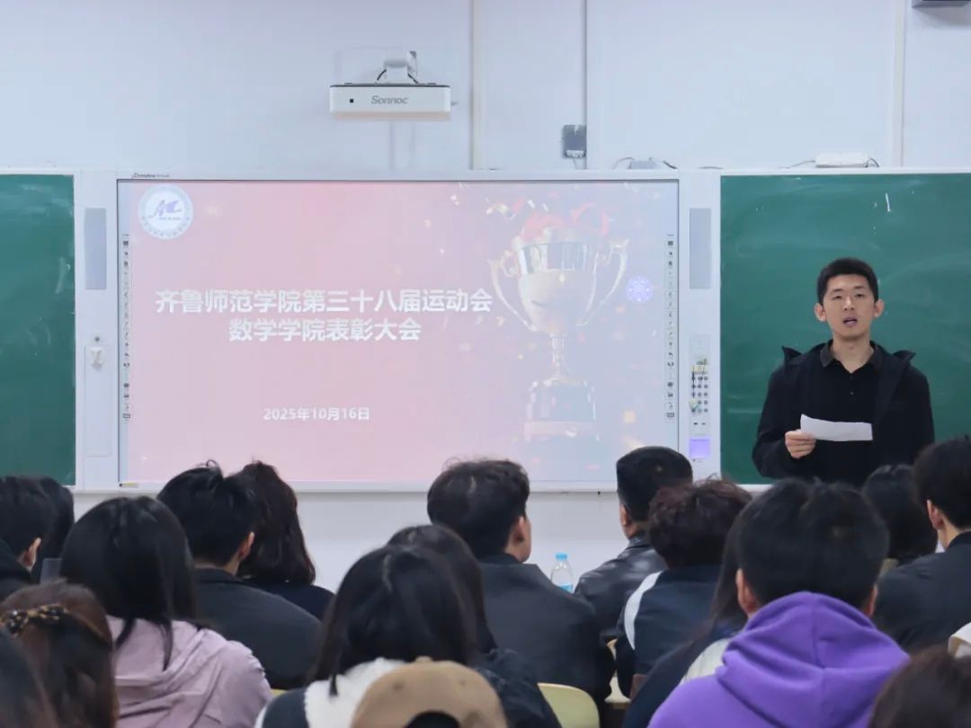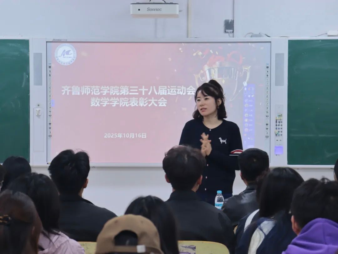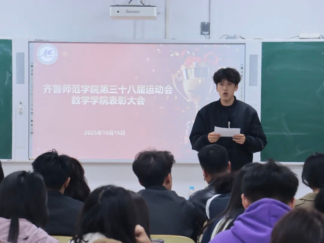 最后,李钰茜以“感动、感谢、感恩”三个关键词对本次运动会及表彰大会作总结讲话。她表示感动于学院学子在运动会中展现出的成长与蜕变、卓越的凝聚力以及个人迸发的潜能;感谢全体运动员的拼搏付出,优异成绩实至名归;感恩学院师生团结一心、共创佳绩的精神风貌。她特别寄语同学们,要将运动场上的积极状态延续至学习生活与未来规划中,以不懈追求的态度,在各类竞赛与学术舞台上传承数学人理性、坚韧、敢闯敢拼的优秀传统。
