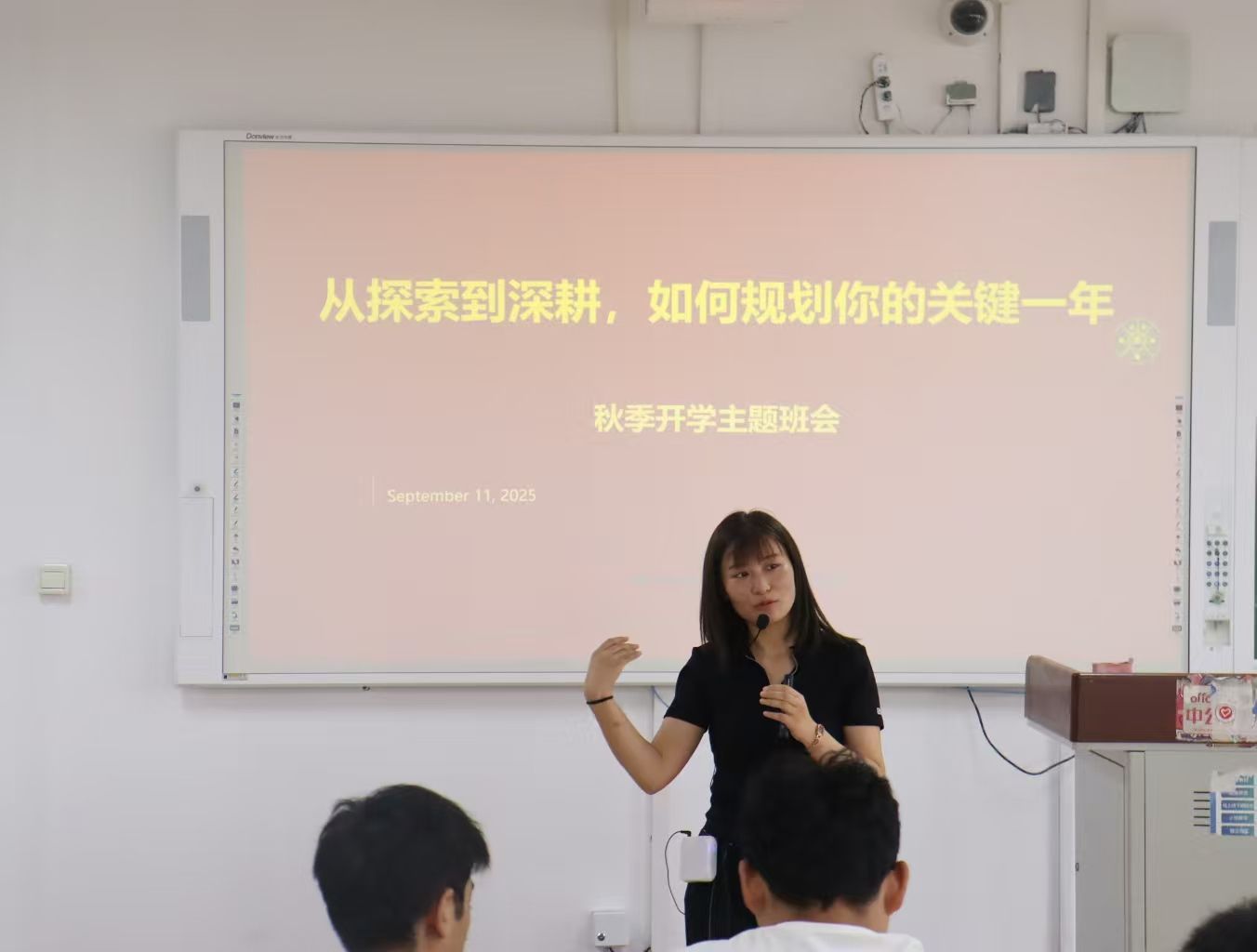 班会伊始,包宜洋围绕专业课程体系展开深度解读。他结合数学学科特点,从基础课程与进阶课程的衔接逻辑、核心知识点的应用场景,到不同研究方向的课程选择建议,用通俗易懂的语言为学生梳理了课程学习脉络,帮助大家明确“学什么”“怎么学”,为后续专业深耕打下坚实基础。