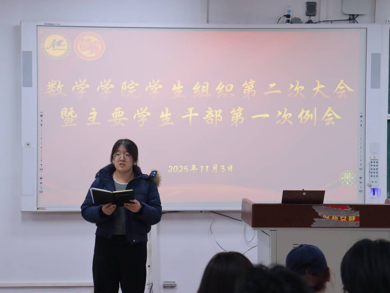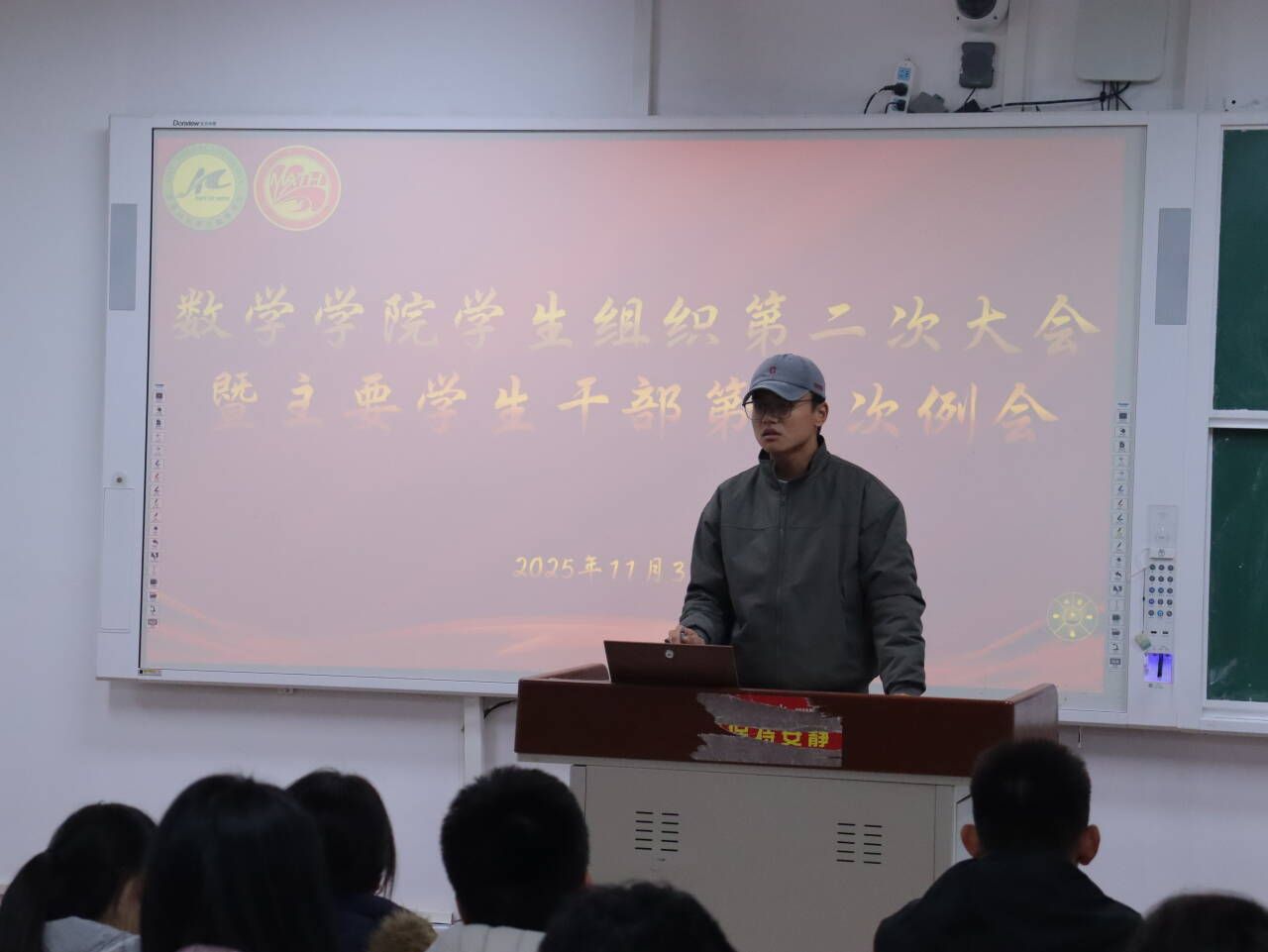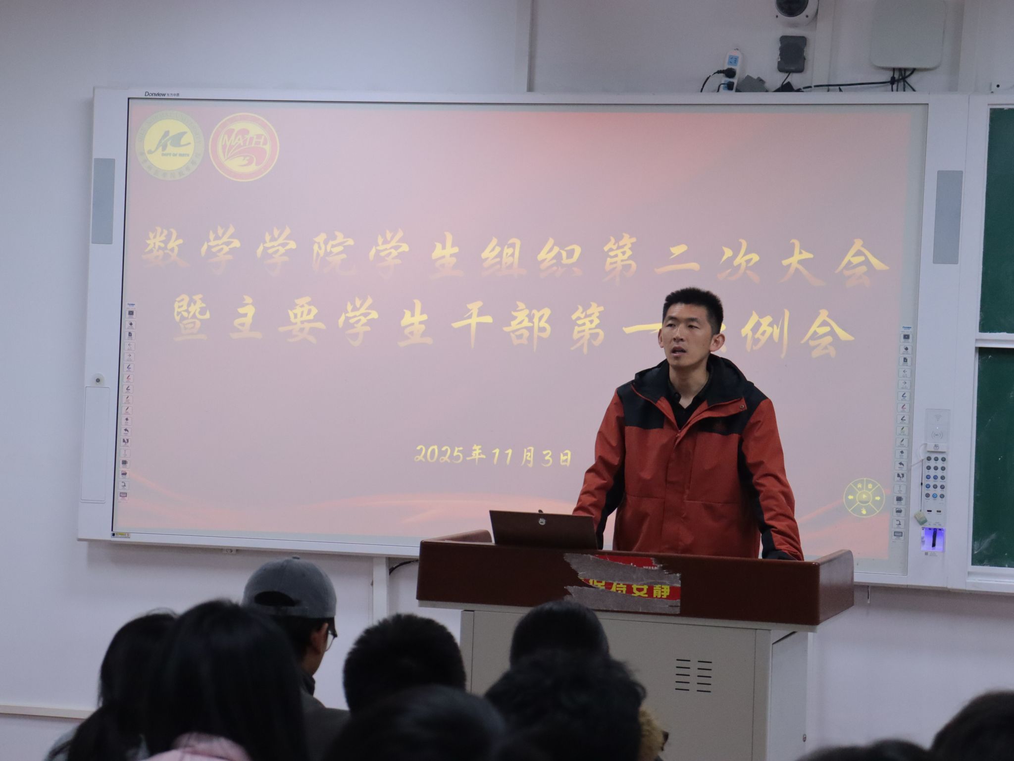 随后,孙帅围绕学生组织纪律建设与日常规范作专题发言。他指出“打铁还需自身硬”,全体成员应严于律己、率先垂范,切实发挥学生骨干的带头作用。针对“第二课堂”活动的落实与信息传达,他提出明确工作要求,并指出各部门之间要加强协作、促进信息共享,全面提升学生组织运行效率。