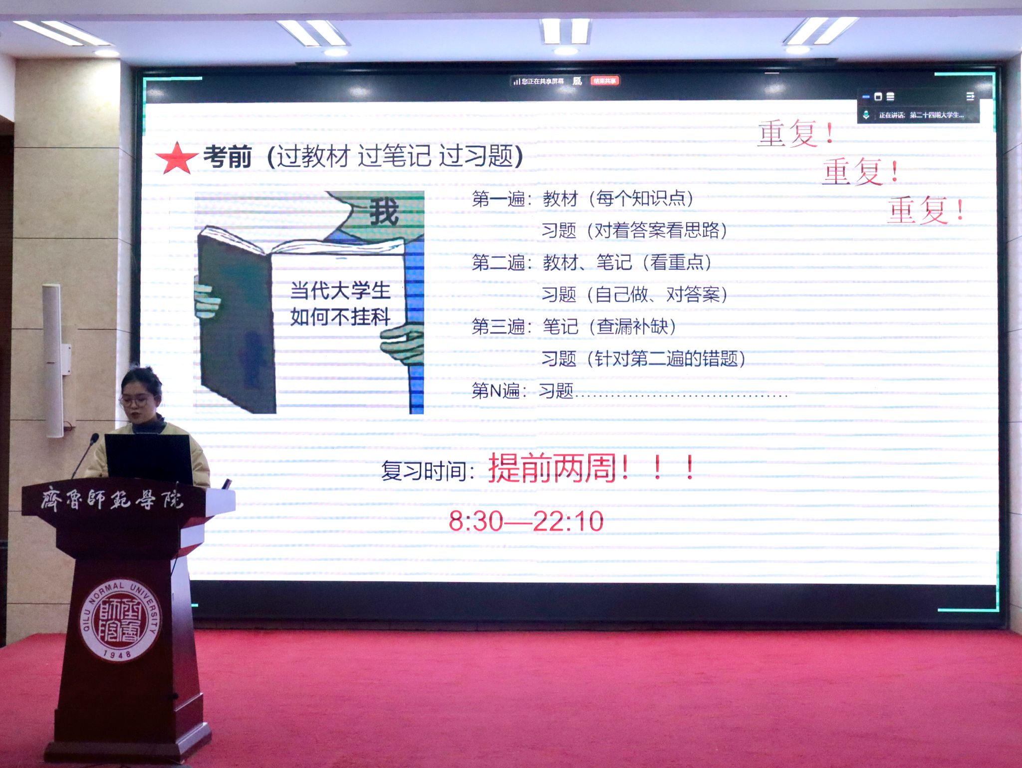针对大学阶段常见的学习迷茫与方向困惑,分享者围绕 “阶段性成长规划”展开深度解读,提出“大一夯基础、大二练技能、大三明方向”的科学成长路径。他们着重强调课堂学习的核心价值,倡导“课前预习摸难点、课上专注抓重点、课后复盘固考点”的闭环学习模式,引导同学们在循序渐进中夯实专业知识,为长远发展筑牢根基。