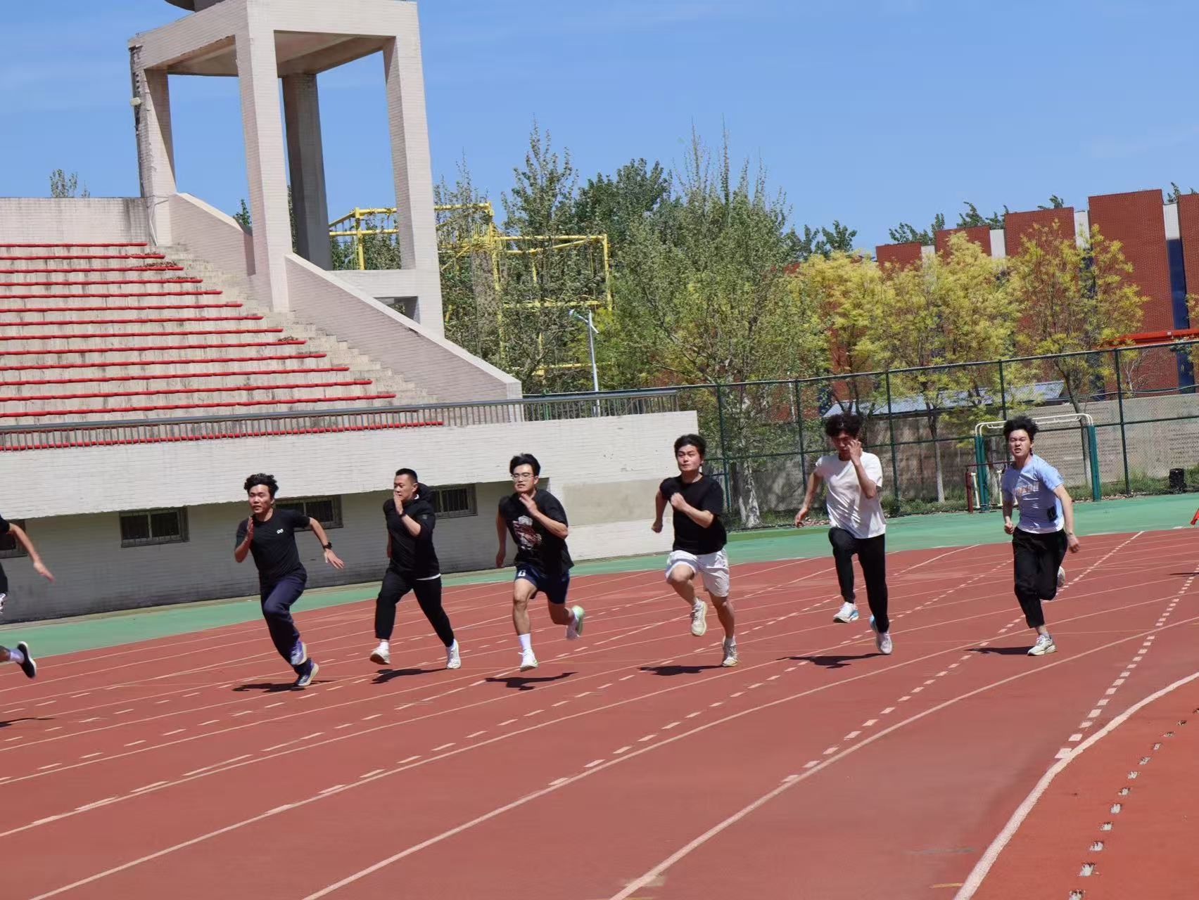 随着发令枪响,百米赛道上的健儿们如离弦之箭,瞬间点燃全场热情。在100米、200米、400米短跑比赛中,速度与激情交织,选手们步伐矫健、目光坚定,向着终点全力冲刺,充分展现了青春的速度与力量。