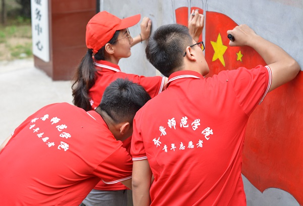 在科普宣讲方面。我们以村庄的文化墙为主要宣传方式。烈日炎炎,勤劳的他们不觉天气炎热,满怀热情的画中国梦文化墙,呼吁村民要牢固树立“绿水青山就是金山银山”的发展理念,提倡绿色循环低碳发展。鼓励村民积极参与到美丽乡村的建设中。