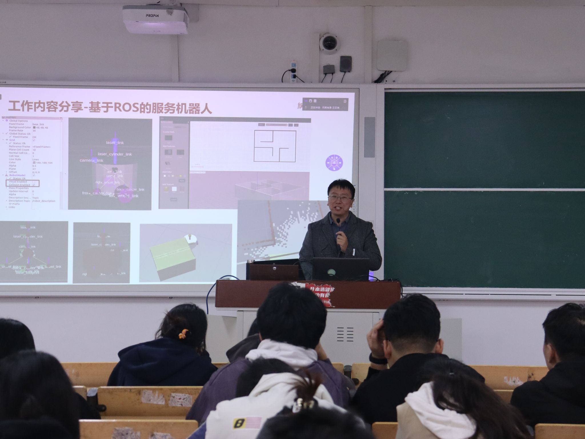 讲座中,王亚涛以“基于ROS的服务机器人”实际项目为切入点,从开发者视角生动分享了人工智能领域的工作日常。他通过现场互动,引导学生思考项目启动阶段的关键决策,并给出专业的职业生涯建议。在技术实践环节,他提出了“先理清框架、再深入实践”的高效学习方法,并现场展示了他与多位一线技术专家的微信聊天记录,将真实的职场交流场景生动还原在学生面前,使学生对人工智能领域的技术岗位分工有了更加具体和系统的认知。