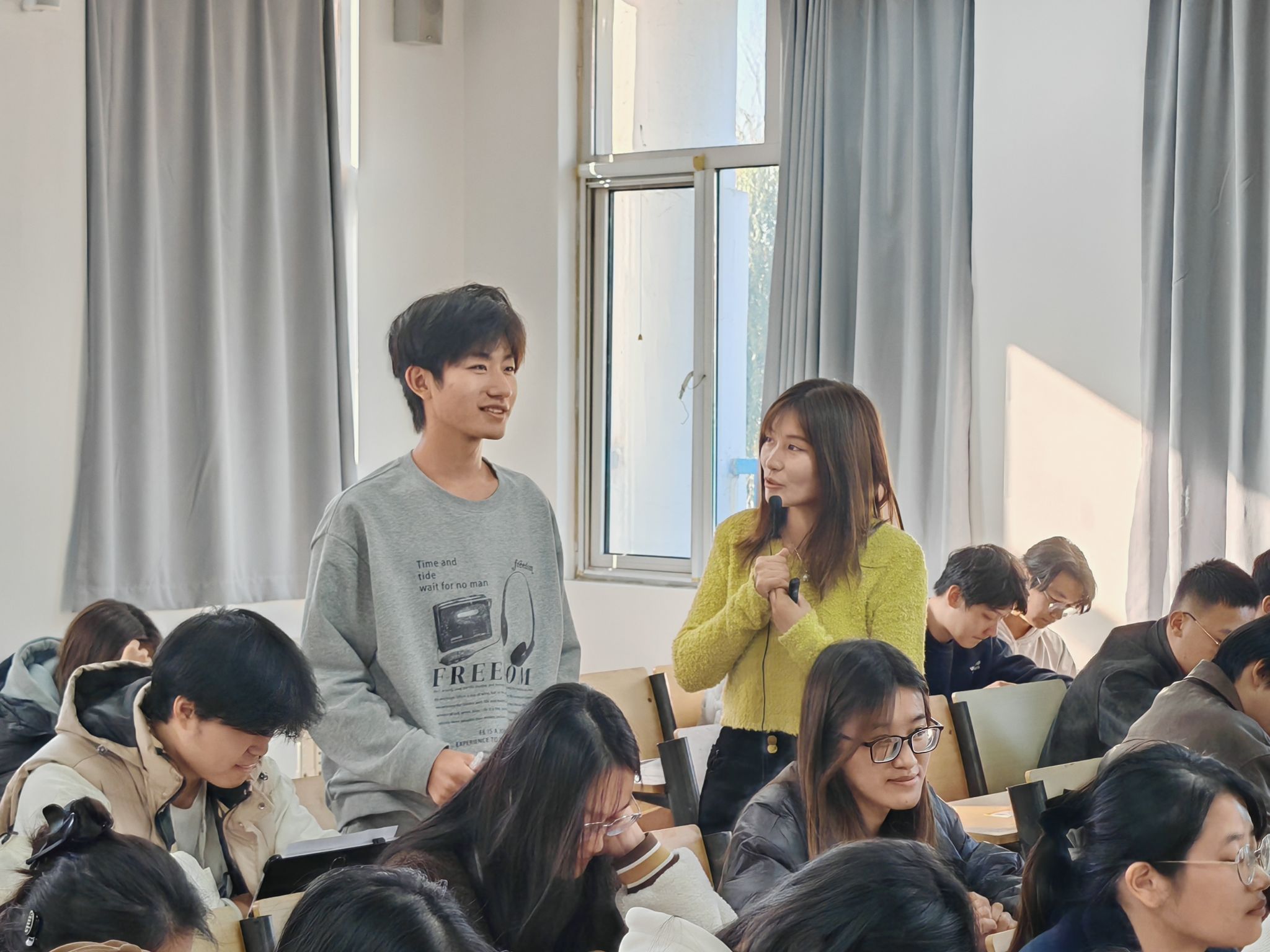 在“人生拍卖会”环节中,王绍敏通过模拟人生资源配置场景,引导同学们围绕“自由、学习能力、健康、财富”等关键要素展开理性思辨与价值选择,展现出对职场核心竞争力与个人发展路径的深入思考。该互动环节有效激发了学生对职场核心竞争力与个人发展路径的深入思考,增强了教学的互动性与启发性,在价值观引导与职业素养培育方面取得良好成效。