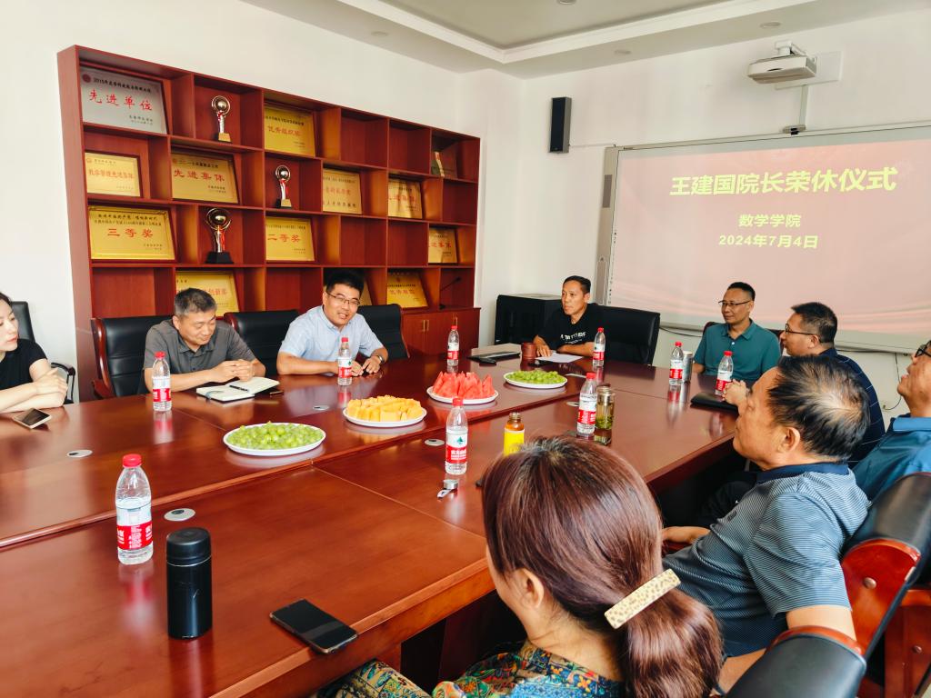 7月4日下午王建国教授荣休仪式在yl7703永利集团会议室举行。教务处处长张克玉、yl7703永利集团党政领导班子及部分教职工参加,荣休仪式由yl7703永利集团党委书记郑延亮主持。