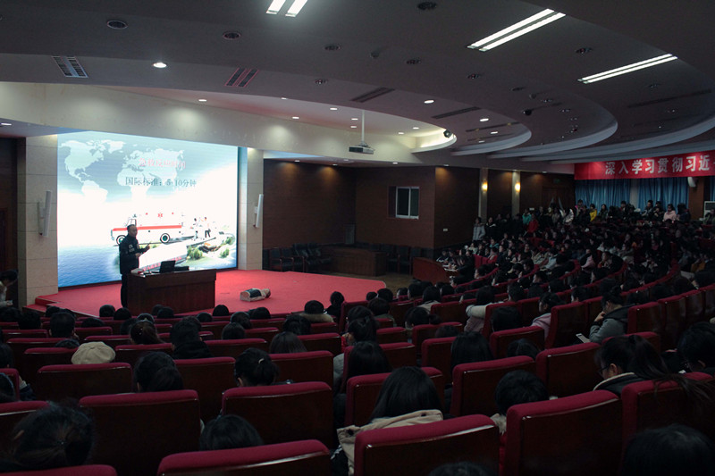 此次讲座为我校开展的“大学生宿舍安全月”活动的内容之一,针对如何在危急时刻自救以及救助他人等方面为我校学生进行了详细的讲解,许多同学在现场学习了正确的心肺复苏法。各学院新生宿舍长以及自管会干事参加了本次讲座。