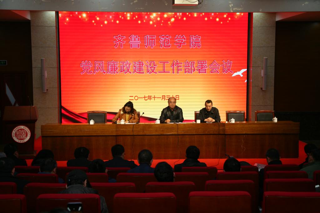 李启波书记就贯彻党的十九大精神,推进学校全面从严治党,加强党风廉政建设提出四点要求:一是进一步提高对全面从严治党重要意义的认识。以习近平同志为核心的党中央把全面从严治党纳入“四个全面”战略布局,使党的面貌焕然一新,为党和国家事业发生历史性变革提供了坚强政治保证。省委党的建设领导小组11月24日召开会议, 强调把“全面、从严”贯穿管党治党始终,推习近平新时代中国特色社会主义思想和党的十九大精神在山东落地生根。全校各级党组织和党员干部要认真学习贯彻中央、省委决策部署,在学校党委领导下,坚定不移全面从严治党,牢固树立“四个意识”,旗帜鲜明讲政治,自觉同以习近平同志为核心的党中央保持高度一致。二是进一步强化管党治党的责任担当。全校各级党组织和各部门单位负责人要明确自己肩上的责任,牢固树立不管党治党就是严重失职的观念,强化主责意识,深入落实全面从严治党“两个责任”,贯彻党风廉政建设责任制,加强廉政风险防控工作,层层传导压力,督促其他班子成员和各级党员干部履行好“一岗双责”,加强对职责范围内党员干部的教育、监督和管理,真正做到守土有责、守土负责、守土尽责。三是进一步构建作风建设长效机制。全面从严治党必须持之以恒、善作善成,要坚持不懈纠正“四风”,巩固拓展落实中央八项规定精神成果,坚决防止“四风”问题反弹回潮。要坚持惩前毖后、治病救人,把握运用好监督执纪“四种形态”,抓早抓小、防微杜渐。各部门单位要以此次检查为契机,认真回顾总结近年来党风廉政建设情况,谋划好下一步工作,努力构建作风建设长效机制,营造风清气正的发展环境。四是进一步推动廉洁文化建设。廉洁文化建设是廉政建设与文化建设的有机结合,是反腐倡廉建设的重要环节,开展廉洁文化进校园系列活动的根本目的是立德树人,引导青年学生坚定理想信念,扣好人生的第一粒扣子,让廉洁习惯、廉洁意识陪伴成长历程。各级党团组织要教育和引导学生知敬畏、守规矩,自觉传播正能量,培养为国家、为民族、为社会作贡献的情怀。