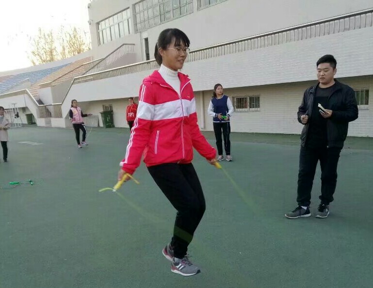 顽强拼搏显身手,绳绳舞动展英姿。为了进一步开展阳光体育运动,丰富校园文化生活,增强学生体质。 11月20日下午我院体育部在操场的主席台前举行了跳绳比赛海选活动。比赛共分为三项:30秒单摇,30秒双摇以及三分钟单摇。
