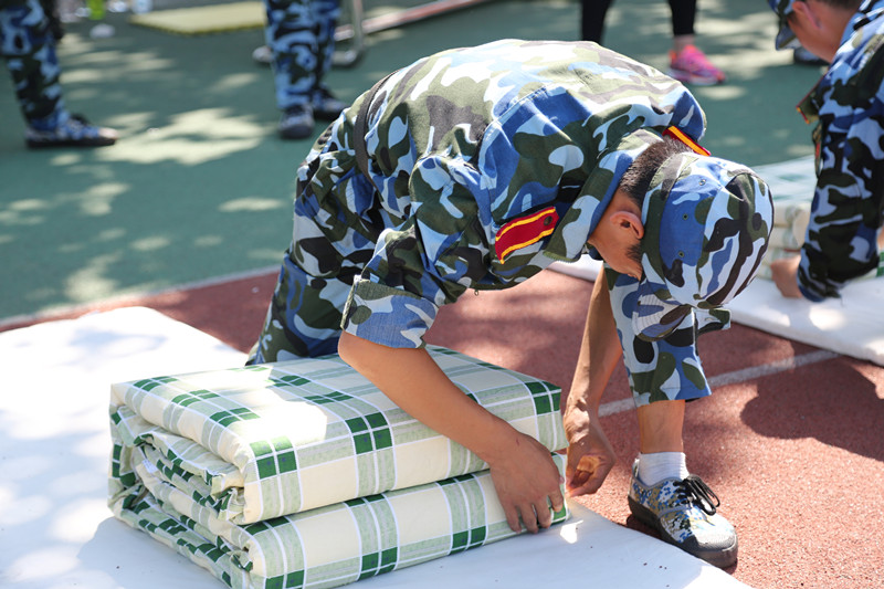 比赛中,参赛学生熟练地运用“压、折、挤、掏”等基本动作,快速完成了从棉被到“豆腐块”的升华,展示了日常训练水平。活动尾声,教官们上阵展示,干净利落的整理动作,规范扎实的整理手法,为每位新生树立了标准和榜样,整场比赛在愉快轻松的学习和竞争氛围中圆满完成。