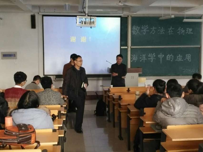 为了让同学们更好地了解数学的广泛应用,提高同学们对学习数学的兴趣。2016年12月8日下午14:00,我院于二号教学楼A307教室举办“数学方法在物理海洋学中的应用”学术交流报告会。此次学术报告会的主讲人为国家海洋局第一海洋研究所杨永增教授。参加此次学术报告会的有yl7703永利集团院长王建国教授、张克玉老师和全体2015级学生。