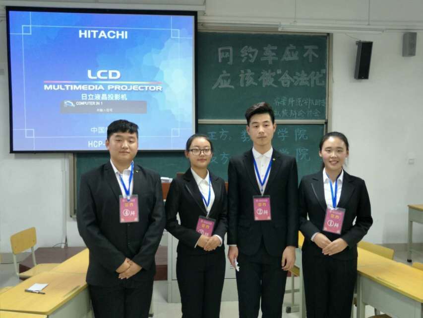 2016年12月7日下午16::00,我院与体育学院辩论赛于二号教学楼B506教室进行。本次辩论赛的辩题为“网约车应不应该合法化”。担任本次辩论赛的评委有:校学生会礼仪部部长刘亚旎,马克思主义学院联合部部长郑玉超,物理与电子工程学院网信部部长褚傲楠和外国语学院学习部副部长杜葳。