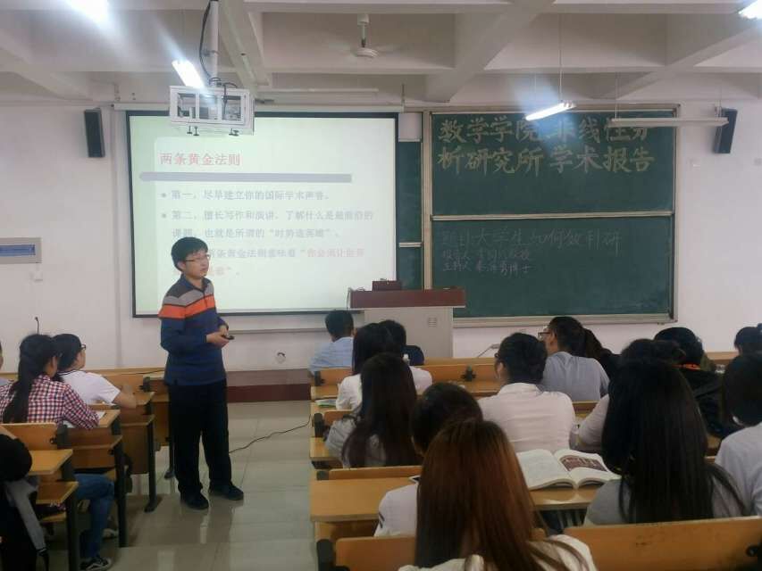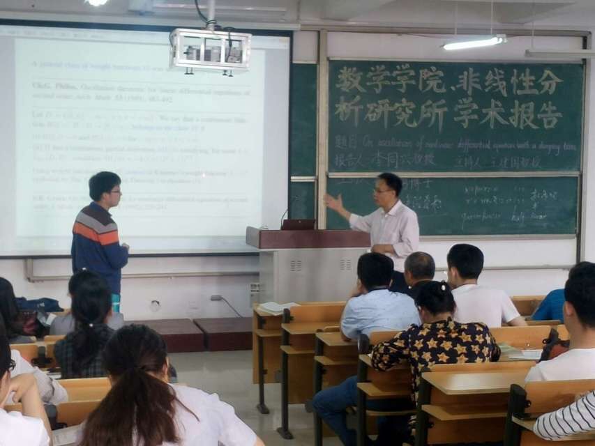 2016年5月5日,yl7703永利集团与非线性分析研究所邀请临沂大学特岗教授李同兴博士做了两场报告:《On oscillation of nonlinear differential equations with damping term》与《大学生如何做科研》。