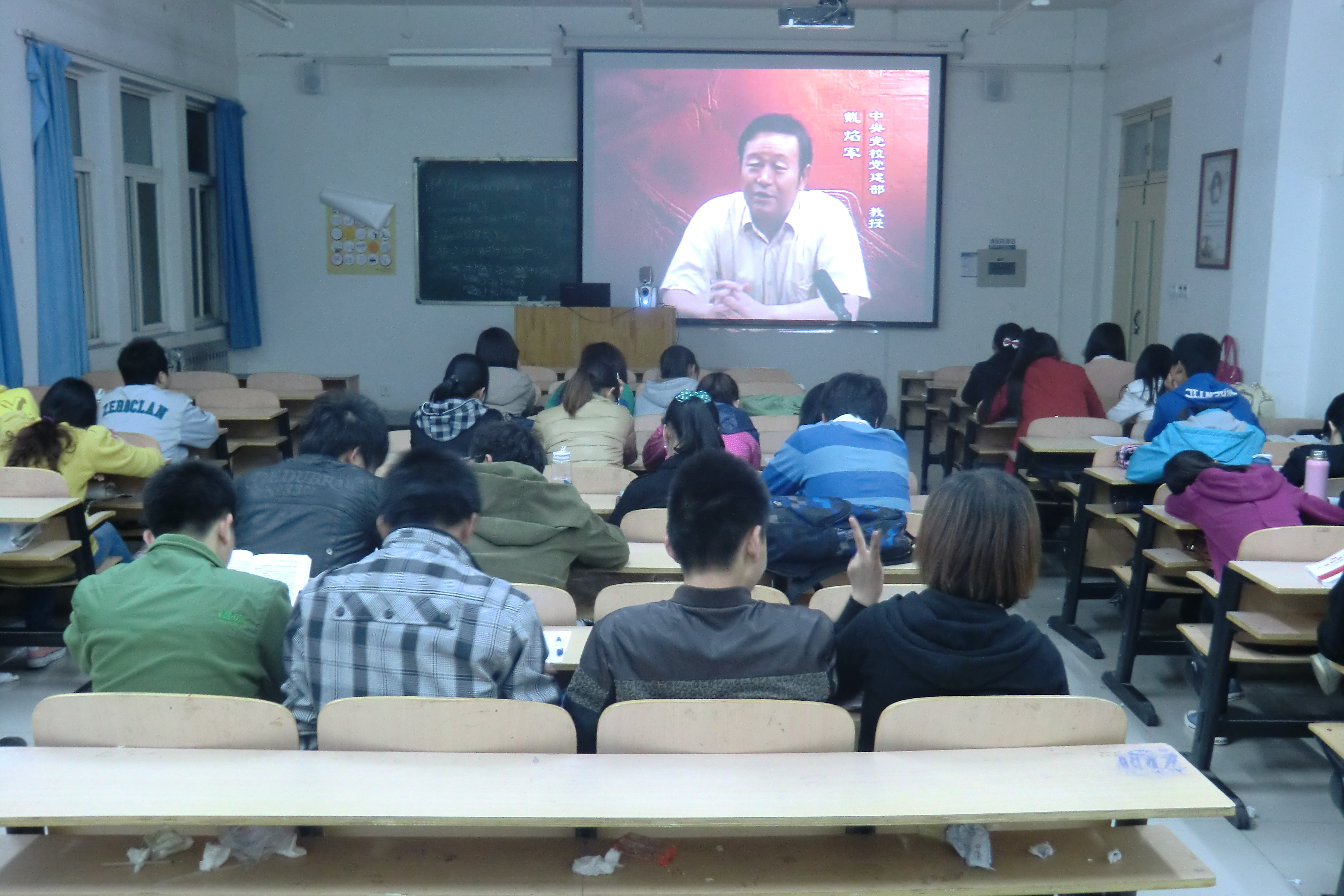 2013年4月25日星期四,晚7点,教学楼A413,数学系参加党的基础知识培训班人员,开展《党的基础知识和基础理论》课程。