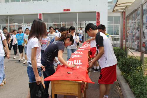 为继承和弘扬五四精神,进一步增强共青团员的责任和意识,激励青年学生爱国爱党,成长成才。五月上旬,由数学系团总支组织的“弘扬五四精神,奉献火热青春”签名活动如期举行。活动现场吸引了许多学生的驻足,同学们纷纷踊跃在横幅下签上自己的名