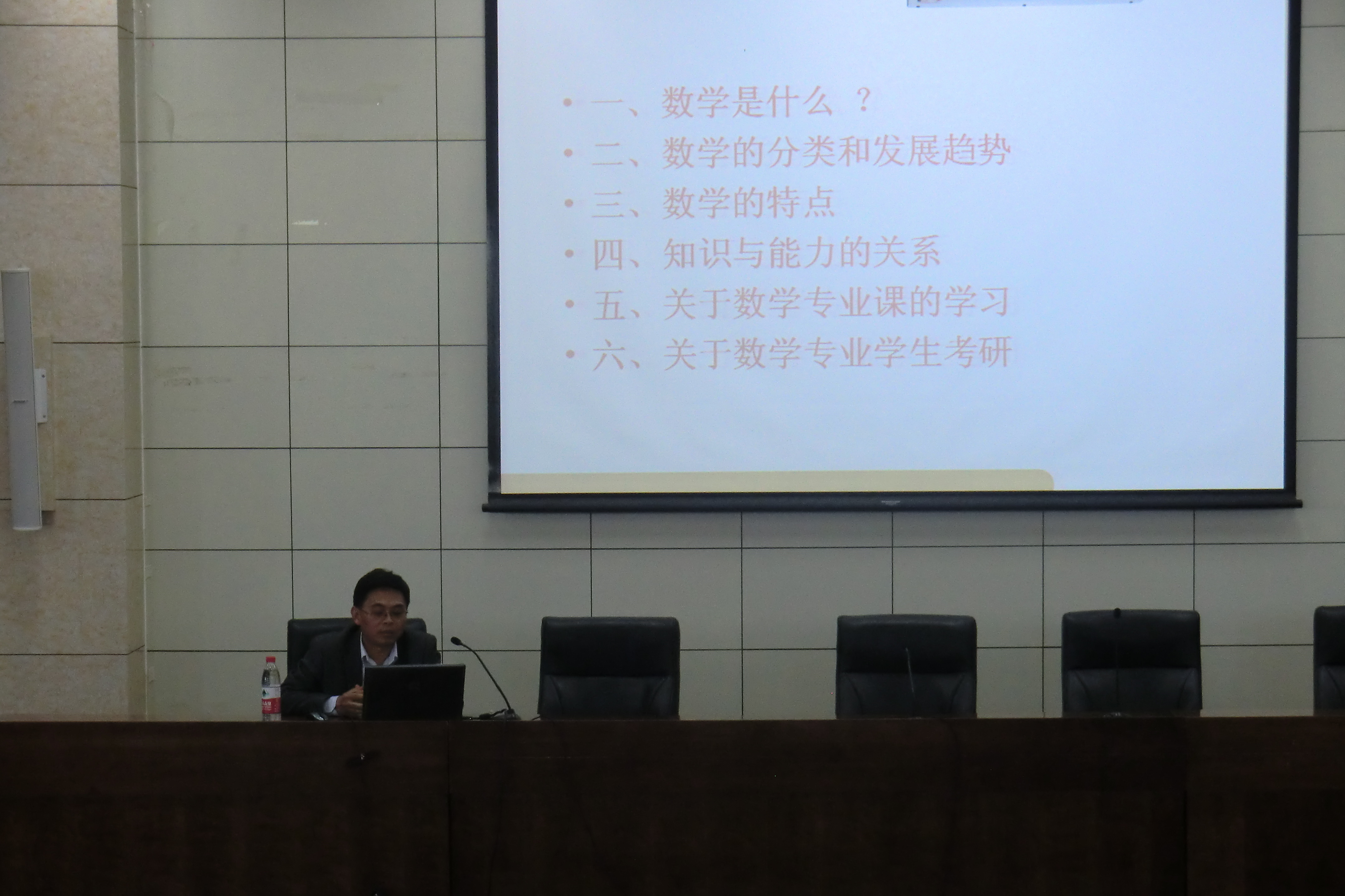 报告会持续两个小时,刘教授每一次深入浅出的讲解,都使我系学生对数学的学习有了更加深刻的认识,解决了同学们中长期存在的学习误区,同学们普遍认为本次报告为数学专业学习打开了窗口,指明了方向,获益匪浅。
