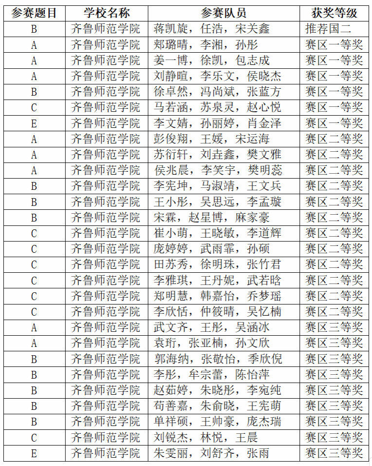 由教育部高等教育司和中国工业与应用数学学会联合主办的2025年全国大学生数学建模竞赛于9月4日到9月7日进行。近日,山东赛区拟获奖名单公布。经过激烈角逐,我校学生在本次比赛中斩获佳绩,共有28个团队获奖,其中推荐国家二等奖1项,山东赛区一等奖6项,二等奖12项,三等奖9项。获奖名单如下: